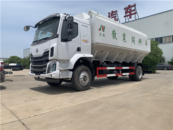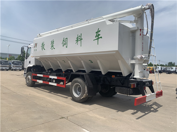 同時(shí)它也可用來運(yùn)輸某些無腐蝕性粉粒狀原料,如制藥廠粉料和糧庫周轉(zhuǎn)。散裝飼料車的飼料罐架設(shè)在卡車的底盤上,
