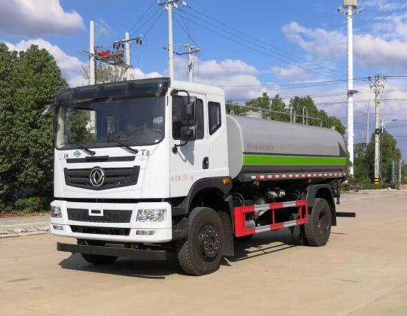 灑水車前裝有鴨形噴嘴或圓頭沖嘴,后面裝有圓柱開灑水噴嘴或蓮蓬頭噴嘴,后部有一工作平臺(tái),裝配有水炮。后部還可裝8個(gè)噴嘴(選裝)。