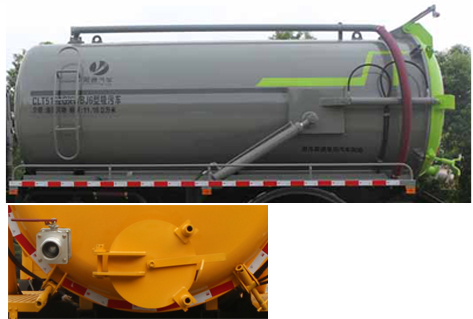 該車用于吸除水坑、下水道里污濁物;主要裝置有罐體及吸污裝置;隨底盤選裝駕駛室,罐體總容量:11.16立方米;罐體有效容積:10.63立方米;罐體外形尺寸(總長×直徑)(mm):5400×1800;ABS型號為CM4XL-4S/4M,生產廠家為廣州瑞立科密汽車電子股份有限公司;側、后防護材料均為:Q235碳鋼,連接方式均為:螺栓連接,后部防護截面尺寸(mm):120×50,后部防護離地高度(mm):450.僅采用底盤4500mm軸距改裝.選裝后部出口樣式;選裝左側樣式;選裝油箱出口及電瓶位置.