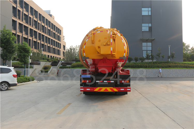 該車用于清洗吸污,主要專用裝置為罐體及清洗吸污裝置;罐體尺寸為(直段長×直徑)(mm):7100×2350(前部3150mm為清水罐,后部3950mm為污水罐);污水罐有效容積14.57立方米,介質(zhì):液態(tài)污物,密度:800千克/立方米;清水罐有效容積11.66立方米,介質(zhì):水,密度:1000千克/立方米,兩罐獨立,且不能同時滿載,清洗功能時用清水罐,吸污功能時用污水罐;隨底盤選裝駕駛室,選裝罐體側(cè)部樣式及后部樣式;卸料方式為舉升后卸式;側(cè)、后防護材料均為Q235,連接方式:螺栓連接。后防護截面尺寸(mm)200×60,下邊緣離地高480mm;ABS系統(tǒng)生產(chǎn)廠家及型號分別為:西安正昌電子股份有限公司(型號:ZQFB-V),廣州瑞立科密汽車電子股份有限公司(CM4XL-4S/4M)。選裝前部不帶卷簾門保護箱。 |