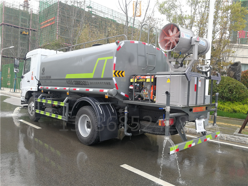 盈通汽車專用功能配置:罐體有效容積11.15立方(實(shí)際容積12方)/15噸,采用武鋼4mm 優(yōu)質(zhì)碳鋼一次卷壓無縫成型,專用部分配專用灑水泵,帶前沖、后灑、側(cè)噴、后工作平臺及灑水高壓炮。配消防接口、自流閥,2根與罐體等長輸水管,水位計(jì),1個(gè)爬梯,兩側(cè)及后杠。灑水泵自吸高度為7米,出水量為60立方米每小時(shí),灑水寬度大于14米,后工作平臺水炮可調(diào)成直沖狀、大雨、中雨、小雨、毛毛雨,直沖射程25米左右,霧狀射程15米左右。(可選配:錳鋼罐體、加粗管道、駕駛室一鍵操作、氣動控制、罐體防腐、高端灑水泵)