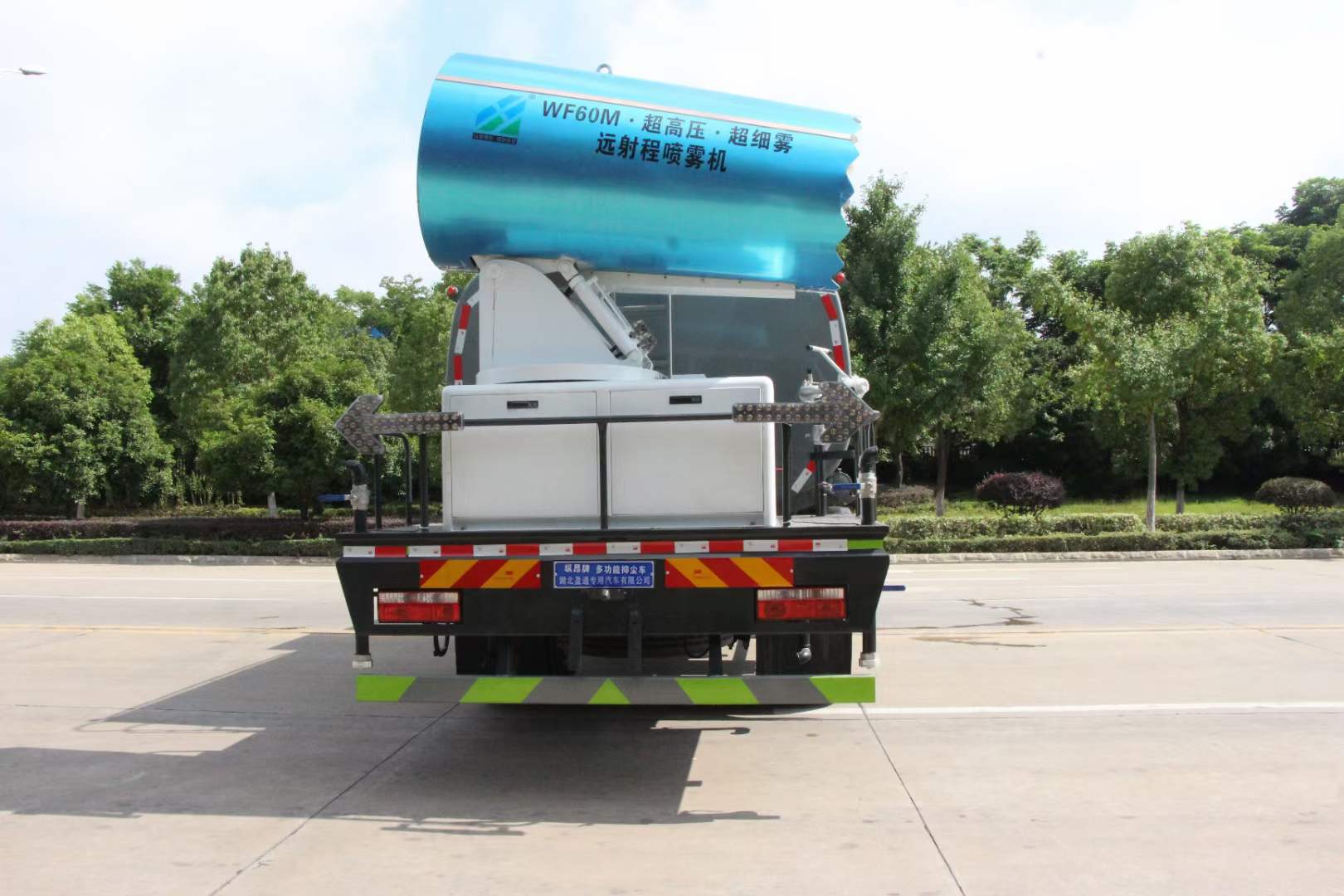 多利卡80米霧炮車_東風多利卡D9抑塵車_京牌12方抑塵車_湖北盈通專用汽車有限公司,該車用途為抑塵降霾.主要裝置為罐體及噴霧裝置.罐體總?cè)萘?/span>:9.2立方米,罐體有效容積:8.77立方米,罐體外形尺寸(長×長軸×短軸)(mm):2800×2450×1720.ABS系統(tǒng)生產(chǎn)廠家,型號 :焦作博瑞克控制技術(shù)有限公司,J ABS;襄陽東風隆誠機械有限責任公司,ABS/ASR-24V-4S/4M.隨底盤選裝限速裝置,限速裝置限速(km/h):89.側(cè)、后防護材料均為:Q235碳鋼,連接方式均為:螺栓連接,后部防護截面尺寸(mm):120×50,后部防護離地高度(mm):490.僅采用底盤3950mm軸距改裝.選裝燃油箱安裝位置.選裝噴霧裝置樣式,選前部電子炮樣式;選裝前部不帶電子霧炮.當前部選裝不帶電子霧炮時,車長7750mm,無前伸.當前部選裝帶電子霧炮時,車長8250mm,前伸為500mm. |