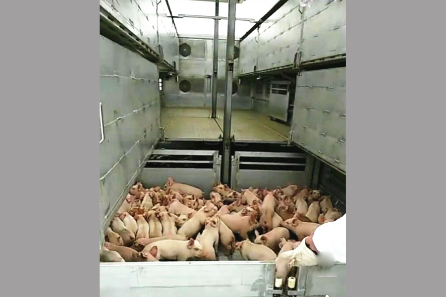 畜禽運輸車是我公司在借鑒國內(nèi)外產(chǎn)品的基礎(chǔ)上,結(jié)合用戶實際需求新研發(fā)的一款運輸仔豬、生豬、雞苗等畜禽的專用功能較強的運輸車輛,是我公司傾力打造的一款專門面向活禽、牲畜運輸市場的一款高端運輸車,該款運輸車旨在增強活禽、牲畜在運輸過程中的舒適度、減少死亡率,提高運輸效率,該車配備設(shè)施完善、自動化程度高。廂式畜禽運輸車可用于成品豬、生豬、豬仔、雞苗跨省運輸,全程無泄漏,有糞液收集系統(tǒng)箱體采用全鋁合金型材制作,質(zhì)量輕、抗腐蝕性強。箱體中層安裝保溫隔板,頂部采用玻璃鋼,有效避免高溫傳導,控制箱體內(nèi)部溫度。車廂內(nèi)部采用全液壓可調(diào)整分層結(jié)構(gòu),二層、三層、四層16欄(根據(jù)需求選擇)飲水系統(tǒng),側(cè)推拉通風滑窗,帶電子排風扇,視頻監(jiān)控,溫度顯示監(jiān)控,中間有隔欄,每層約承重300頭仔豬的重量。車廂后部選裝垂直液壓升降尾板,更實用!