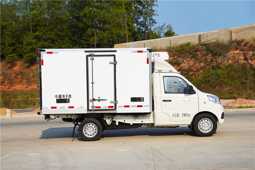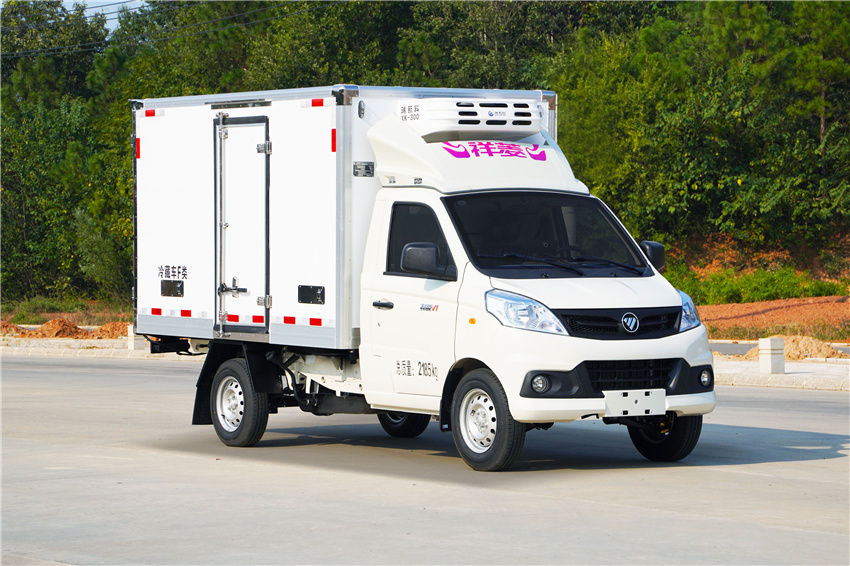 福田祥菱M1冷藏車采用國六汽油東安115馬力(DAM15KR)發(fā)動機,5擋變速箱,2750軸距,高配,原廠空調(diào),后雙胎,5檔變速箱,175R14后雙胎,122后橋,ABS,電動助力轉(zhuǎn)向,