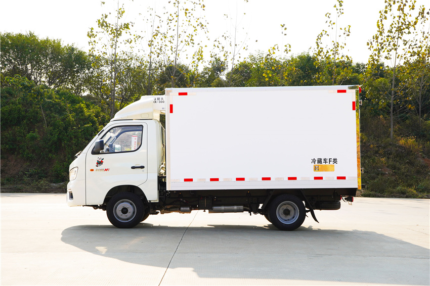 福田祥菱M1冷藏車采用國六汽油東安115馬力(DAM15KR)發(fā)動機,5擋變速箱,2750軸距,高配,原廠空調,后雙胎,5檔變速箱,175R14后雙胎,122后橋,ABS,電動助力轉向,
