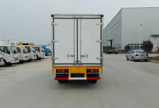 冷藏車廂體:采用國標(biāo)A級聚氨酯保溫材料,厚度為8厘米,廂體內(nèi)外采用玻璃鋼材質(zhì)全包裹。不銹鋼鎖件。包角、包邊鋁合金型材。底盤采用高強(qiáng)度花紋鋁板定制。可選裝肉鉤導(dǎo)軌,和底部通風(fēng)槽。
