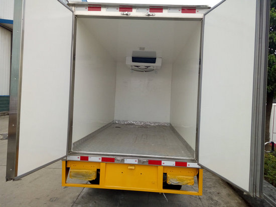 冷藏車廂體:采用國標(biāo)A級聚氨酯保溫材料,厚度為8厘米,廂體內(nèi)外采用玻璃鋼材質(zhì)全包裹。不銹鋼鎖件。包角、包邊鋁合金型材。底盤采用高強(qiáng)度花紋鋁板定制。可選裝肉鉤導(dǎo)軌,和底部通風(fēng)槽。