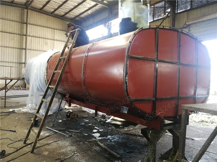 3. 保層溫的制作是在水罐外部另外焊接10mm厚的支撐骨架,然后用保溫材料將骨架內(nèi)部填充滿,**在骨架外蒙上一層外皮。 保溫層外表鐵皮采用8mm厚高強(qiáng)度耐磨板,可選擇使用不銹鋼分鏡面8K或磨砂板