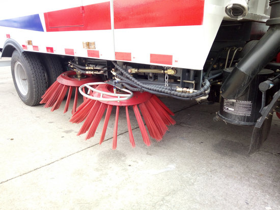 8、左右立掃為雙掃盤(pán),掃刷上加裝噴水裝置,用于噴霧降塵。左右立掃分開(kāi)控制,可實(shí)現(xiàn)右掃和全掃等不同的作業(yè)模式。