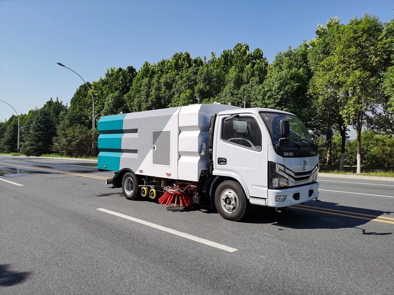 該洗掃車采用東風(fēng)多利卡國六二類底盤改裝,加裝副發(fā)動(dòng)機(jī)、風(fēng)機(jī)、清水箱、垃圾箱、左右立掃、掃盤降塵系統(tǒng)、左右高壓側(cè)噴高、吸盤內(nèi)置高壓主噴桿、氣動(dòng)系統(tǒng)、液壓系統(tǒng)、專用裝置電控系統(tǒng)和副車架等改裝而成。