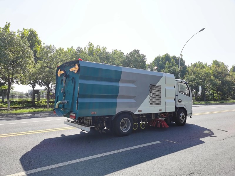 ● 左右側(cè)噴桿V形布置和吸嘴內(nèi)置主噴桿無間隙高壓噴嘴噴水布置,有效的將清洗后的污水和垃圾全部歸攏趕至吸嘴處,并吸收于污水垃圾箱內(nèi),使路面不留塵土、積水,路面清洗、刷掃和污水回收效果佳。