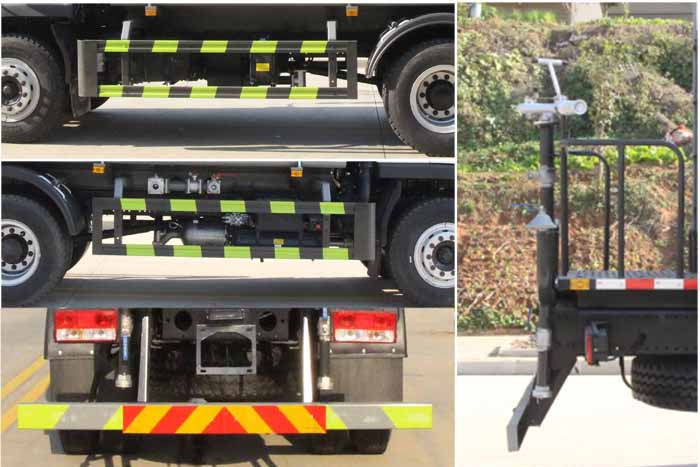 該車主要用于城鄉(xiāng)園林綠化噴灑作業(yè);主要裝置為水罐及噴灑裝置;罐體總容量:11.66立方米;罐體有效容積:11.1立方米;罐體外形尺寸(長×長軸×短軸)(mm):4200×2300×1450.運輸介質:水,密度1000千克/立方米;ABS型號為CM4XL-4S/4M,生產(chǎn)廠家為廣州瑞立科密汽車電子股份有限公司.側、后防護材料均為:Q235碳鋼,連接方式均為:螺栓連接;后部防護截面尺寸(mm):120×50,后部防護離地高度(mm):480.隨底盤選裝限速裝置,限速88km/h.選裝前部電子水炮裝置樣式,選裝前部不帶電子水炮;當前部帶電子水炮時,前伸500mm,整車長度為8250mm,8000mm;當前部不帶電子水炮時,前伸為0mm,整車長度為7750mm,7500mm.僅采用底盤3950mm軸距改裝.隨底盤選裝新款前格柵,新款保險杠,新造型前霧燈.選裝油箱電瓶安裝位置,選裝車輛前部鴨嘴裝置. |