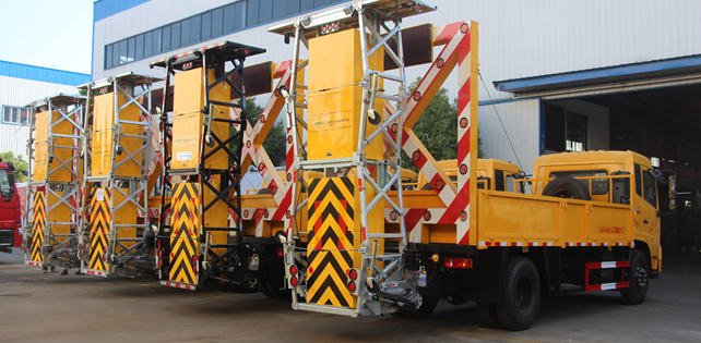 上裝配置:護(hù)箱:采用Q235國標(biāo)邊3mm底板花紋板4mm厚,箱體后部防撞包采用美國進(jìn)口T90型號,防撞緩沖吸能模塊主要由車載防撞緩沖墊和導(dǎo)向標(biāo)志架組成,充當(dāng)施工作業(yè)車輛后方的緩沖衛(wèi)士。如若發(fā)生追尾事故,能夠在肇事車輛和前方施工作業(yè)區(qū)域之間構(gòu)建一個緩沖區(qū)域,通過機(jī)具結(jié)構(gòu)變形吸收撞擊的能量,最大限度地降低被保護(hù)人員及設(shè)備遭到碰撞的幾率。高性能液壓系統(tǒng),可實現(xiàn)快速舉升和落下操作,方便設(shè)備運輸轉(zhuǎn)場,一鍵啟動功能,舉升和落下防撞裝置,當(dāng)防撞裝置未完全落下到工作位置或舉升到垂直運輸位置時,會有自動警告音提示。