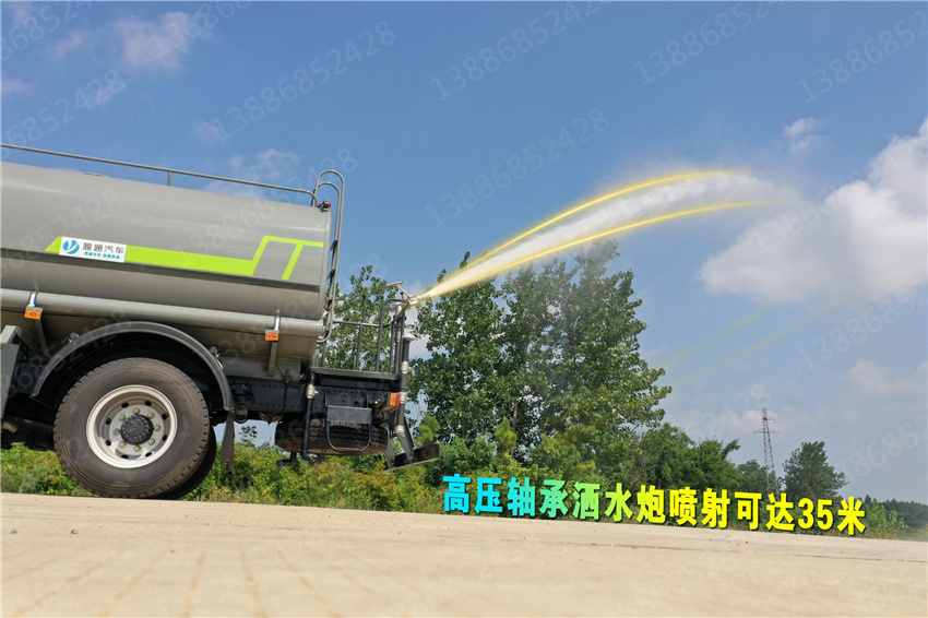 我公司產(chǎn)品標(biāo)配前噴(鴨嘴)、后沖、后灑、側(cè)噴、后置式工作平臺,平臺上配置綠化水炮(可 360°旋轉(zhuǎn),既可以調(diào)成柱狀,也可以調(diào)成霧狀,更可以調(diào)成直沖狀、大雨、中雨、小雨、毛毛雨),配備優(yōu)質(zhì)大功率專用灑水泵(可自吸自排,可從河里或池塘抽水到罐體),取力器,雜物過濾網(wǎng),消防接口,自流球閥系統(tǒng)、取力器、球閥、濾網(wǎng)均為國家標(biāo)準(zhǔn)產(chǎn)品,主管道加粗,法蘭墊、法蘭盤加厚,大通徑球閥。整體具備性能優(yōu)良安全可靠、效率高、流量大、維修方便等特點。