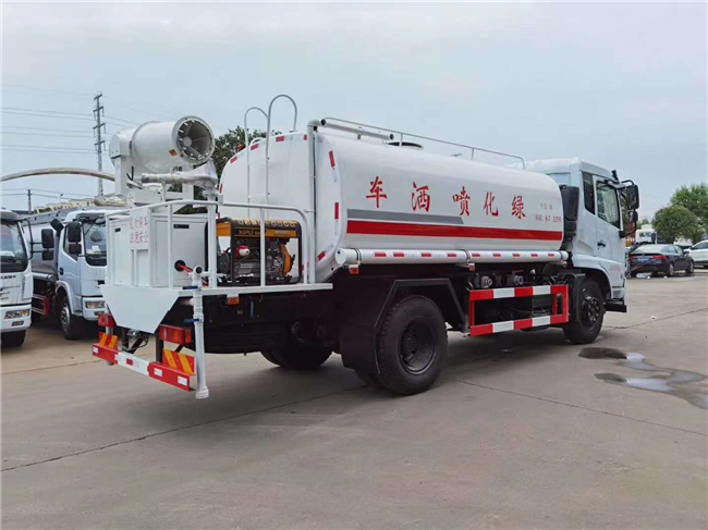 罐體有效容積10.8立方米,運(yùn)輸介質(zhì):水,密度:1000千克/立方米;罐體外形尺寸(長(zhǎng)×長(zhǎng)軸×短軸)(mm):5000×2190×1620;整車長(zhǎng)(mm)/前懸/后懸(mm)/軸距(mm)對(duì)應(yīng)關(guān)系:8500/1475(1515)/2525(2485)/4500;8500/1475(1515)/2325(2285)/4700;8900/1475(1515)/2925(2885)/4500;8900/1475(1515)/2725(2685)/4700.側(cè),后防護(hù)材質(zhì):Q235,連接方式:螺栓連接;后防護(hù)斷面尺寸/離地高:120×60/500(mm)).隨底盤選裝駕駛室前臉局部造型變化,選裝遮陽板,選裝排氣管樣式.選裝后上部噴霧裝置,選裝后操作平臺(tái)樣式,選裝后作業(yè)指示燈,選裝卷盤,選裝前置鴨嘴,選裝噴霧機(jī),選裝罐體兩側(cè)圓形管筒,選裝不帶上綠化澆灌;安裝具有衛(wèi)星定位功能的行駛記錄儀.裝有ABS,ABS生產(chǎn)廠家;東科克諾爾商用車制動(dòng)系統(tǒng)(十堰)有限公司, 浙江萬安科技股份有限公司,型號(hào):3631010-C2000, VIE ABS-Ⅱ.